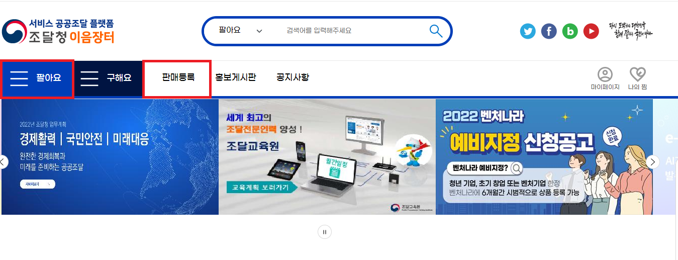 1. 조달청 이음장터 홈페이지에서 '조달업체'로 로그인합니다.