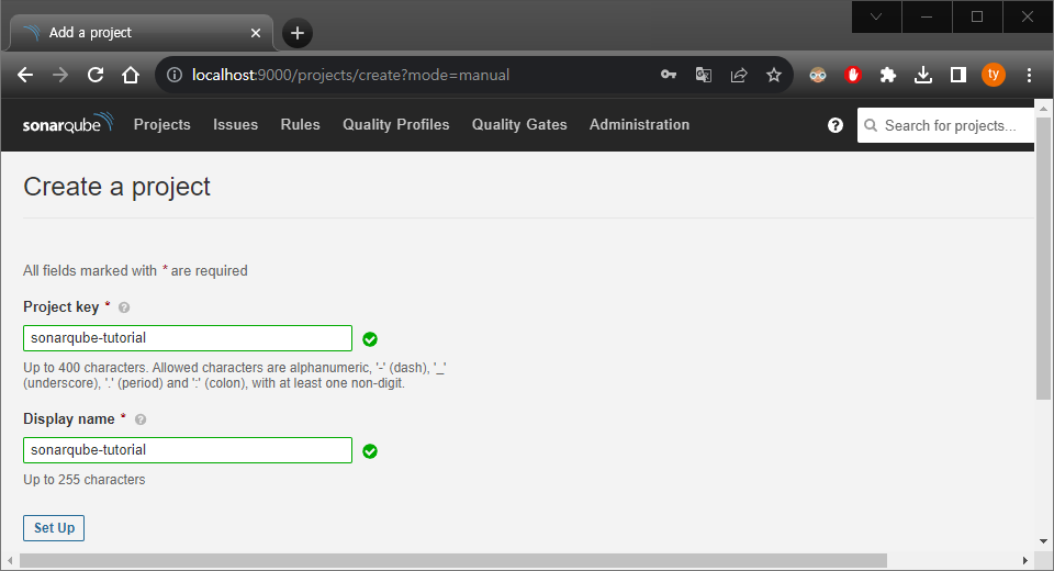 Add a project - Manually 로 이동하여 프로젝트 이름을 입력합니다.