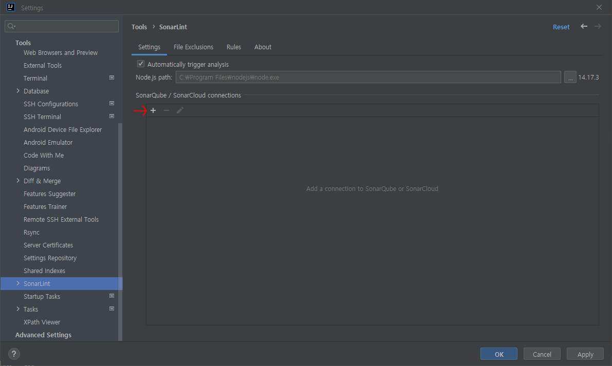 설치가 완료되었으면, 다시 설정창에 진입하여 Tools - SonarLint로 이동합니다.